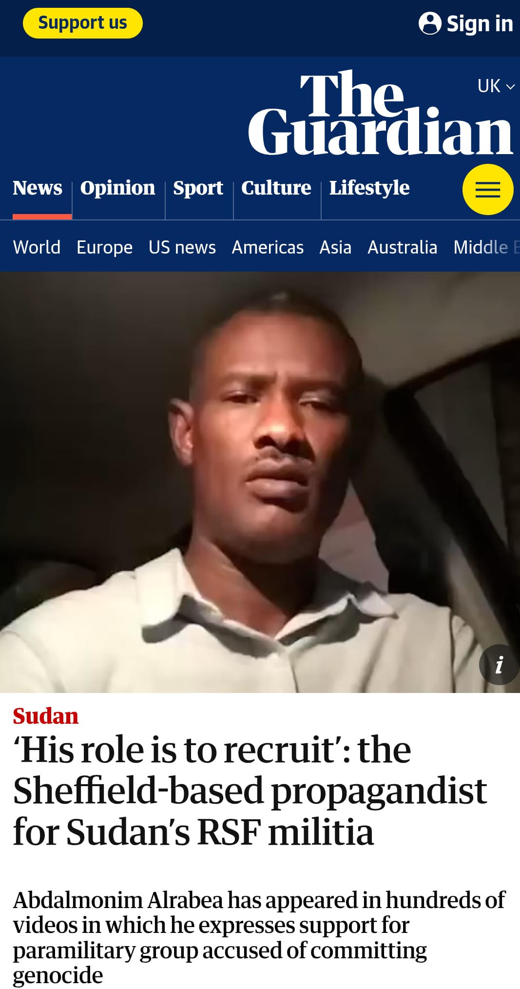 كشفت صحيفة “الغارديان” البريطانية عن واحدة من أكثر قضايا الدعاية الرقمية إثارة للجدل، بعد تتبع نشاط عبد المنعم الربيع، وهو مواطن بريطاني من أصول سودانية مقيم في مدينة شيفيلد، ظهر مئات المرات عبر منصات التواصل الاجتماعي وهو يروّج لميليشيا الدعم السريع المتهمة بارتكاب جرائم إبادة جماعية في إقليم دارفور.