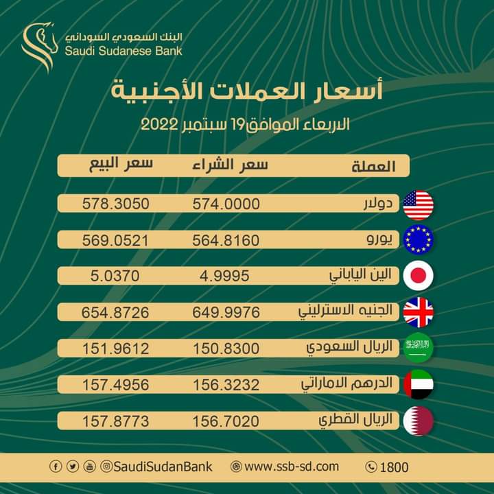 أسعار العملات الأجنبية مقابل الجنيه السوداني اليوم الأربعاء 19 اكتوبر 2022م
