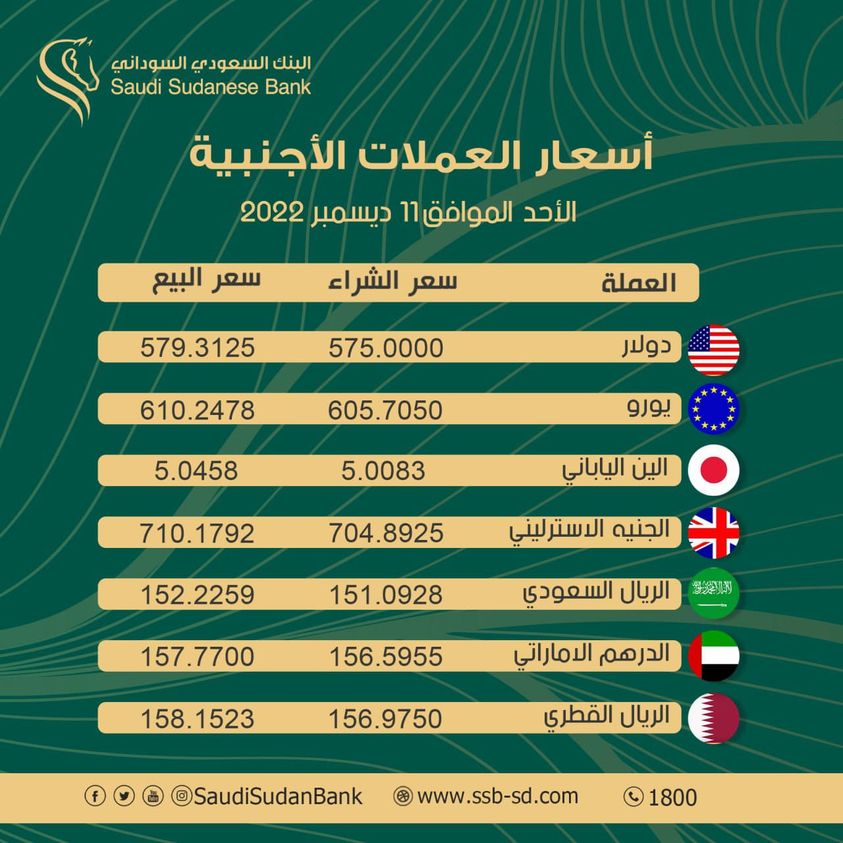 أسعار العملات الأجنبية مقابل الجنيه السوداني اليوم الأحد 11 ديسمبر