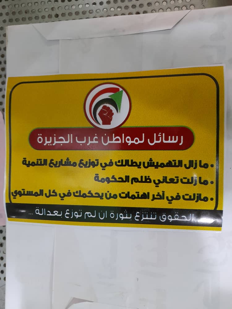 أعلن مواطنو غرب الجزيرة عن اعتزامهم التصعيد بكل الطرق المتاحة في حال لم يتم تعديل توزيع سفلتة ال(410) كليو من الطرق الزراعية حسب المساحة والكثافة السكانية،وقال المواطنون أن التوزيع تم بصورة لم تراعي الكثافة السكانية والمساحة وأنه بحسب التوزيع الحالي ستحصل غرب الجزيرة على 40 كيلو فقط، وتأتي سفلتة الطرق تعويضا عن بيع السكة حديد والتي احتجزت أموال بيها لدى وزارة المالية الاتحادية