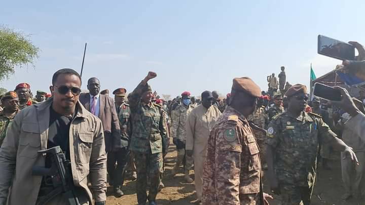 وأكد سيادته إلتزام الدولة بإكمال الترتيبات الأمنية لمنسوبي الجيش الشعبي توطئة لدمجهم في صفوف القوات المسلحة السودانية لمواصلة مسيرة تأمين وحماية الوطن والمواطن، ومشددا على ألا عودة للحرب التي تم تجاوزها باتفاقية سلام جوبا، التي أكد العزم على تنفيذها واستكمال متطلباتها بأسرع وقت ممكن.