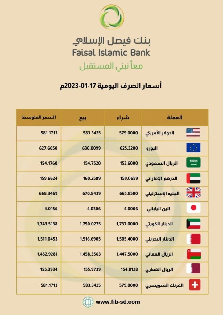 أسعار العملات الأجنبية مقابل الجنيه السوداني اليوم الثلاثاء 17 يناير 2023م