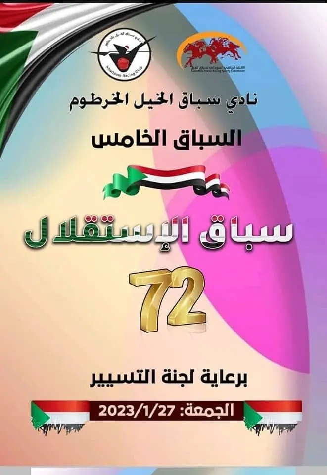 ينظم نادي سباق الخيل بالخرطوم سباقه الخامس سباق الإستقلال (67) برعاية لجنة تسيير النادي وذلك ظهر اليوم الجمعه الموافق 23/1/27م بمضمار سباق الخيل الخرطوم