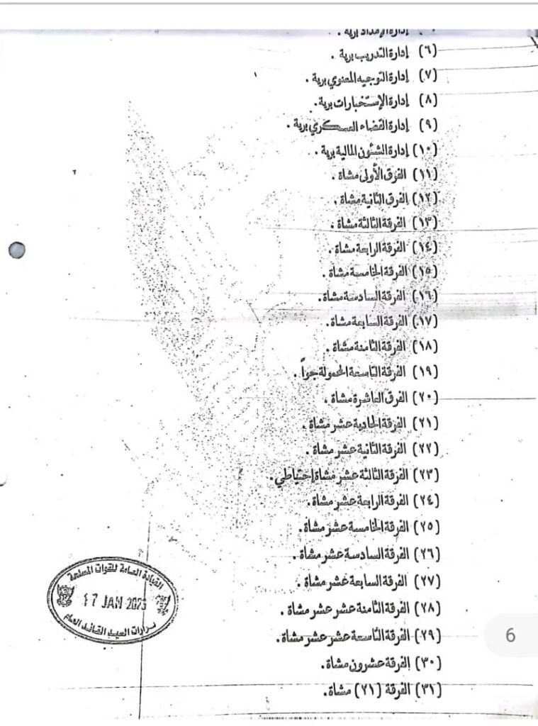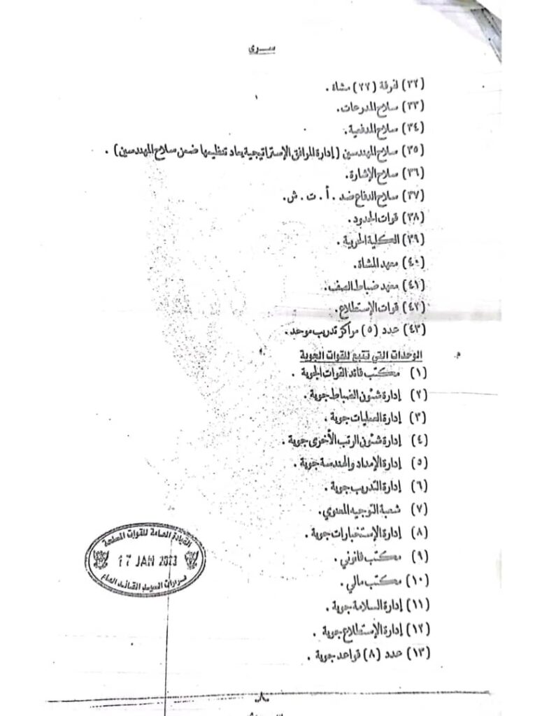 أصدر القائد العام للقوات المسلحة الفريق أول ركن عبد الفتاح البرهان عددا من القرارات قضت بهيكلة القوات المسلحة وحل عدد من الوحدات وإعادة تسمية أخرى.