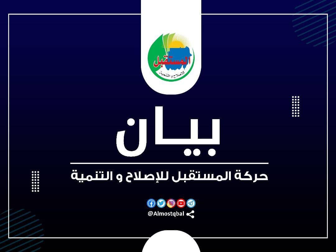 في البدء تحيّ حركة المستقبل للإصلاح والتنمية نضالات جماهير الشعب السوداني في ذكرى انتفاضة ٦ أبريل ١٩٨٥ و٢٠١٩، والتي أكد من خلالها شعبنا رغبته في الديمقراطية وفي بناء دولة السلام والحرية والعدالة.اليوم وبعد مرور أربعة أعوام على التغيير فإن مسيرة التحول الديمقراطي لا زالت تراوح مكانها، وقد تعمق الانقسام السياسي، واستفحل الاستقطاب المناطقي والجهوي على نطاق واسع من ولايات البلاد، حيث تؤكد تقارير موثقة مقتل الآلاف في اقتتال قبلي خلال الثلاث سنوات الماضية في ولايات دارفور والنيل الأزرق وجنوب وغرب كردفان وشرق السودان، أما الأوضاع الاقتصادية فهي ليست بأحسن حالاً من الأوضاع السياسية حيث اتسعت دائرة الفقر فبحسب تقرير برنامج الغذاء العالمي فإن أكثر من تسعة مليون سوداني يعانون نقصاً حاداً في الغذاء، وترجح تقارير ارتفاع هذا العدد للضعف خلال العام الجاري، أما في جانب الخدمات العامة تشهد البلاد انحداراً مريعاً في مجالات الصحة والتعليم حيث تؤكد منظمة اليونسيف أن ثلث أطفال السودان لا يذهبون للمدارس لتلقي التعليم.والأخطر من كل ذلك هو انتقال الانقسام من المكونات السياسية إلى المنظومة العسكرية وهو ما ينذر بوقوع كارثة قد تؤدي لانزلاق البلاد إلى أتون حرب أهلية، وبالرغم من قتامة الأوضاع في بلادنا فإن جهود الحل للخروج من الأزمة لا تتناسب مع فداحة وخطورة المشكلة، فمنذ توقيع الاتفاق الإطاري في ديسمبر من العام المنصرم تشهد البلاد انسداداً كاملاً في أفق الحل السياسي، حيث مضت أكثر من أربعة أشهر على التوقيع بدون الوصول لوفاق وطني يؤسس لفترة انتقالية تفضي لتحول مدني ديمقراطي.شعبنا الكريملقد أكدت حركة المستقبل أن الاتفاق الإطاري يجب أن يستصحب جميع القوى السياسية والاجتماعية، وذلك لبناء أكبر كتلة داعمة للانتقال الديمقراطي.جماهير شعبنا الوفيلقد ضم الاتفاق الإطاري جملة من الأخطاء الجوهرية التي لا تخدم التأسيس الدستوري السليم في الفترة الانتقالية أهم هذه الأخطاء الإخلال بمبدأ استقلالية القضاء والفصل بين السلطات التشريعية والسيادية والتنفيذية، كما أن ورش القضايا الخمس التي نُظمت برعاية الآلية الثلاثية تم نقض أهم بند فيها، وهو ضرورة مشاركة ٦٠% من القوى غير الموقعة على الاتفاق الإطاري في الورش، مع ضرورة تمثيل أصحاب المصلحة الحقيقيين، وهو ما لم يطبق.شعبنا العظيمإن أخطر ما تشهده البلاد هو استثمار بعض القوى السياسية في الخلاف بين القوات المسلحة والدعم السريع في قضية الدمج وتحديث وتطوير المنظومة العسكرية، وهو بالتأكيد فعل يتنافى مع الفطرة الوطنية السليمة وينذر بانزلاق البلاد لصراع يهدد وحدة التراب السوداني.الجماهير الاوفياء إن جميع الشواهد الماثلة تؤكد أن الاتفاق الإطاري قد فشل في أن يكون أساساً مقبولاً للحل السياسي الشامل وعليه فإننا نؤكد على الآتي: