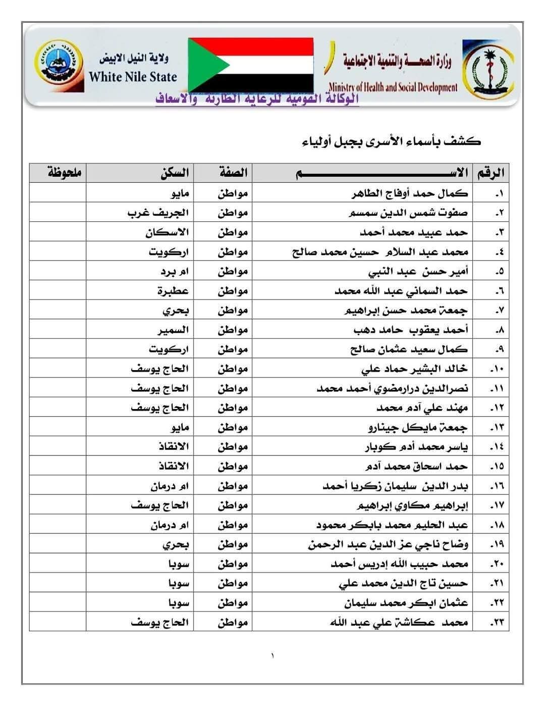 قناة الزول تنشر القائمة النهائية لأسماء المواطنين المحررين من جبل أولياء
