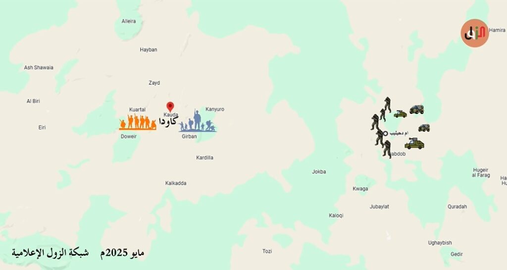 حشدت المليشيا قوات كبيرة في طريق شمال غرب النهود وهو الطريق المؤدي للفاشر قرابة ال ٥٠٠ عربة شوهدت في ود بندة يوم الخميس وتوقع ان تذهب القوة إلى النهود او الخوي وظلوا متواجدين في ود بندة حتى مساء الخميس،وودبندة منطقة تستخدمها المليشيا للحشد والهجوم على النهود والمناطق المجاورة لها.