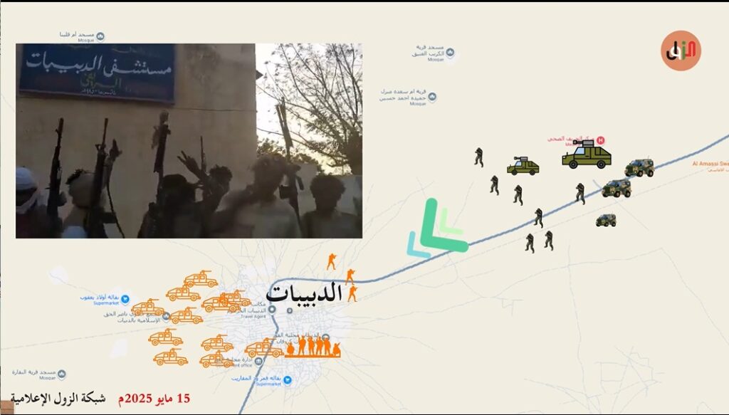 ما زالت قوات المليشيا متواجدة في مدينة الدبيبات ولكن القوات المسلحة تقدمت بشكل كبير نحو الدبيبات حتى قرية الكريب وأم سعدة وشارفت على دخول المعركة الفاصلة في مدينة الدبيبات في محلية القوز وهذه ستكون معركة فاصلة لربط الدلنج بالأبيض.